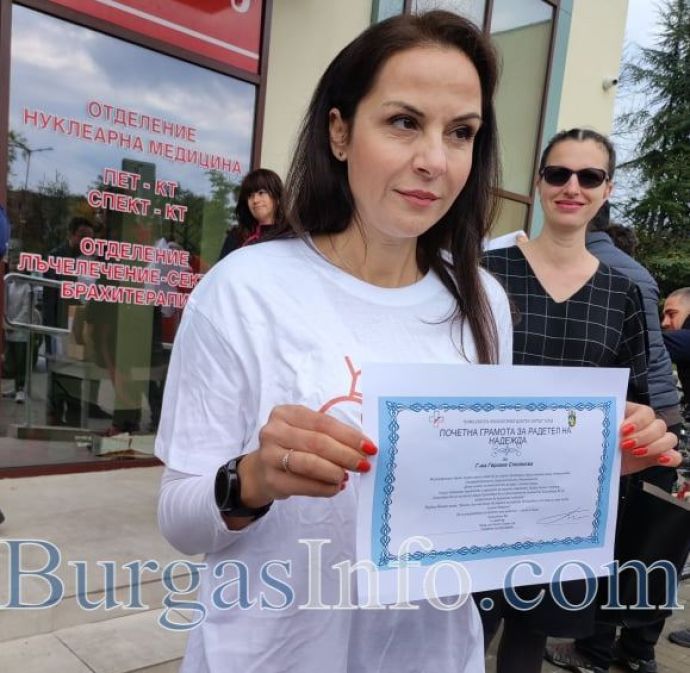 Двигателите на инициативата получиха грамоти „Радетел на надежда“. Особено трогателен беше моментът, когато баща на починала от рак дъщеря подари перуки за пациенти на КОЦ-Бургас – ВИЖТЕ ТУК.