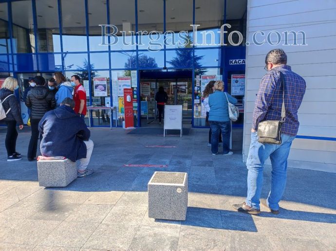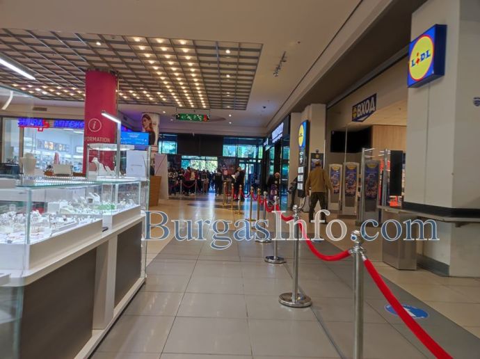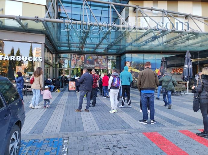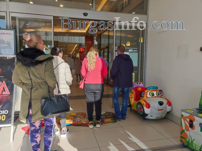 „Повечето тук са предимно служители, не само на този мол, но и на други обекти. Опашката е голяма, но трябва да чакаме, за да отидем на работа”, казаха пред БургасИНФО чакащи.