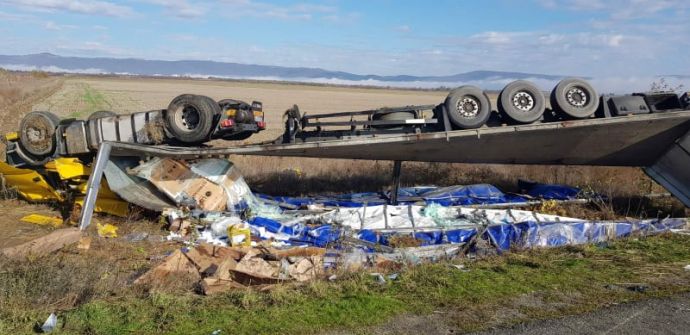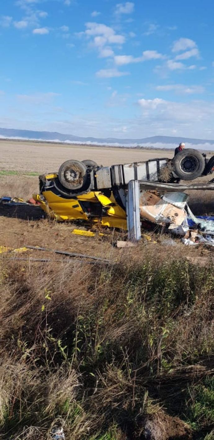 Мъж е загубил живота си при катастрофа, станала около 02.30 ч. тази нощ на пътя София - Карнобат - Айтос - Бургас, около село Пирне. От ОДМВР посочват, че поради движение с несъобразена с релефа на пътя скорост, самостоятелно катастрофира, преобръщайки се в крайпътна канавка, товарен автомобил “Волво” - влекач с прикачено полуремарке, с надписи “Еконт”. Той е бил управляван от 49-годишен бургазлия, който загинал на място. Тялото му е откарано в отделение “Съдебна медицина” към УМБАЛ - Бургас за аутопсия. Не се е стигнало до разсипване на товари от самокатастрофиралия товарен автомобил. Пътният трафик не е нарушен. По случая е образувано досъдебно производство.