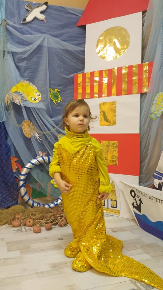 В другата група на фона на прекрасно море „плува“ кораб с името „Бургас“, а златна русалка сякаш изплува нейде от дълбините. Гордо застанал със своя неизменен тризъбец – повелителят на океаните и моретата Нептун, също се радва на децата от група „Златна рибка“. Специално за празника те бяха научили нова песничка посветена на Свети Никола.