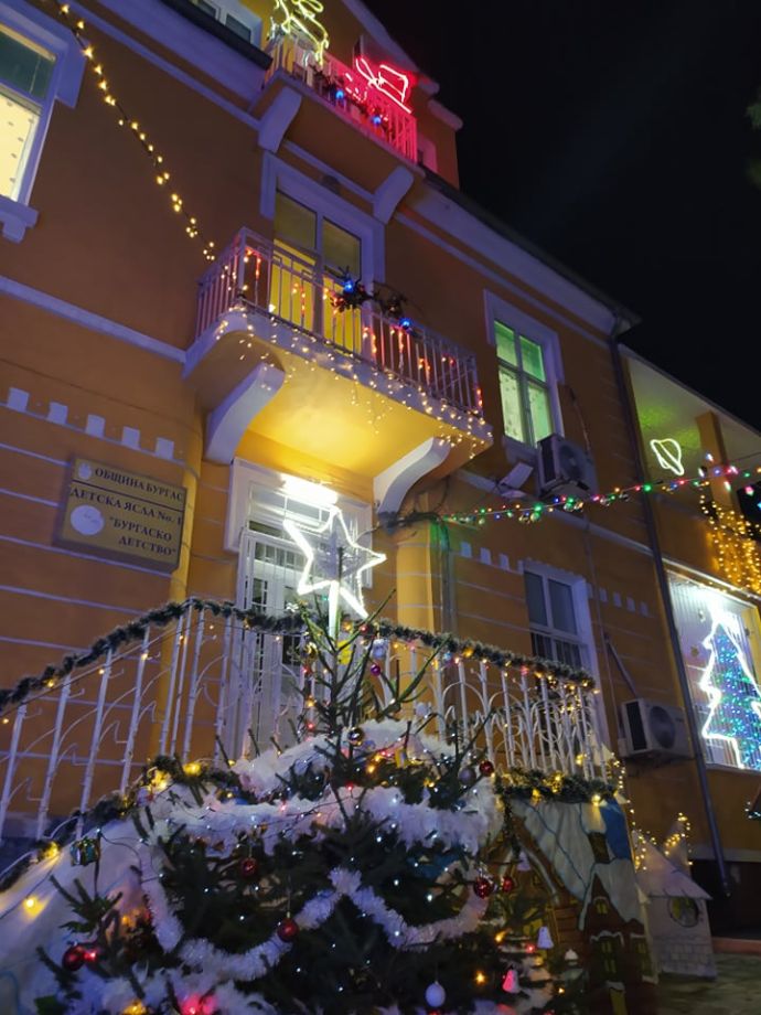 В навечерието на празника, по традиция цялата ясла „Бургаско детство“ грейва в приказно вълшебство, осветена от хиляди коледни лампички. Тази година Снежанка и седемте джуджета радват малки и големи.
