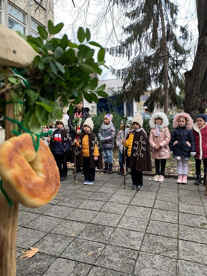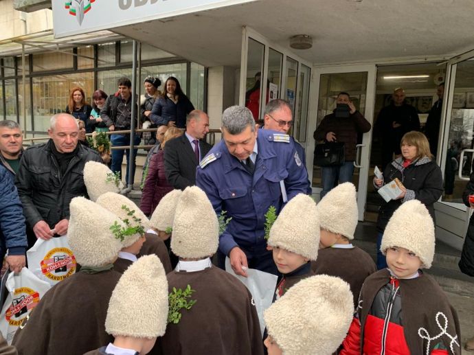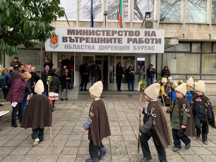 Малчуганите, облечени в традиционни носии, подкрепяни от „нежните цветя” на група „Морски звезди”, изпълниха коледарски песни и наричания за най-прекрасния зимен празник. С пожелания за здраве, щастие и берекет коледарчетата дариха много усмивки и добро настроение на служителите на реда, които преди всички бургазлии имаха привилегията да отворят символично „дома си” за светлите християнски традиции и чистите детски наричания.