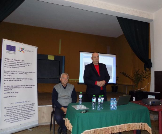 Срокът за приключване на проекта бе 20.05.2022 г. Благодаря на фирмите изпълнители за качествената работа и приключване на дейностите почти шест месеца по-рано, защото проблемът със старото депо бе изключително труден за решаване, предвид гниещите процеси, неприятните миризми и самозапалването на сметището, на които ставахме свидетели през последните няколко години. Този проект е важен за общината, но е ключов за развитието на Каменар. Това каза кметът Иван Алексиев по време на заключителната пресконференция по проекта за рекултивация на общинско депо за битови отпадъци в село Каменар, която се състоя на 14.12.2021 г. в сградата на НЧ „Просвета 1888“, филиал в село Каменар.![]()