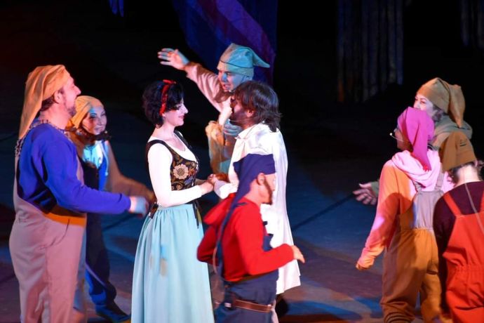Обичаната приказка за Снежанка и джуджетата ще представят солистите: Шмилена Султанова – в ролята на Снежанка, Лина Пеева – като злата Царица, в образа на Принца, спасител на Снежанка, и Огледало – Милен Динолов /който ще влезе в ролята и на Огледалото/, Разказвачът, който представя на аудиторията основните герои и линии в сюжетното развитие, ще бъде Бранимир Недков, Професора – Калина Попова, Кихльо – Мирослав Димитров, Смешко – Александър Перпериев, Любопитко – Весела Апостолова, Всезнайко – Петър Тихолов, Мърморко – София Ловджиева, Малчугана – Мария Добрева.