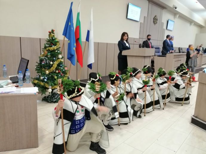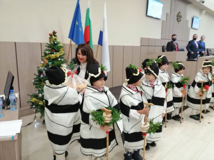 Коледарчета от детска градина "Морска завезда" създадоха празнично настроение на последното заседание на Общински съвет Бургас за годината. Малчуганите нарекоха за здраве и пожелаха берекет на всички. Те подариха традиционна пита на председателя на ОбС проф. Севдалина Турманова. Тя от своя страна ги зарадва с подаръци от името на Общинския съвет.