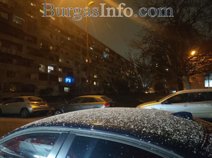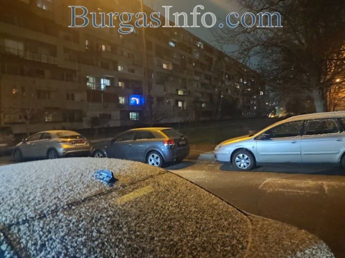 Четири дни преди Рождество Христово в Бургас заваляха първи снежинки, а тънка бяла пелена покри улици и коли. Най-щастливи естествено са децата в морския град, които рядко се наслаждават на тази гледка.