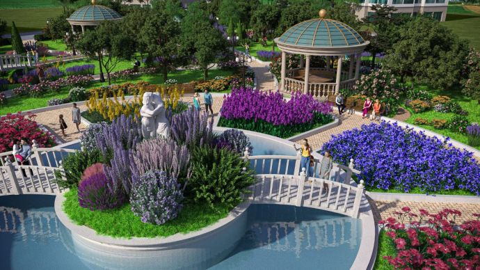 Зона “Ботаническа градина” – Интересно организирана под форма на цвете голяма площадка с разнообразни цветни лехи от повече от 36 вида цъфтящи красиви растения, съобразени с климатичните ни условия. В тази зона също така е разположено мини “ езеро” с остров и скулптурна композиция в центъра. Към острова водят два романтични моста.