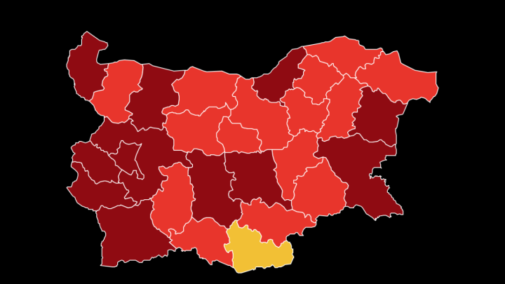 Заболеваемостта от коронавирус в страната продължава да расте и вече 12 области са в тъмночервено, където заразените са над 500 на 100 000 души.