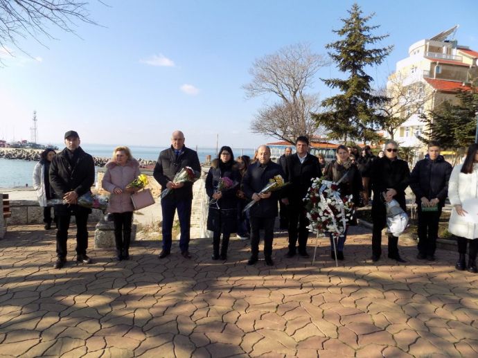 Венци и цветя поднесоха кметът Иван Алексиев, председателят на Общински съвет Поморие Адам Адамов, общински съветници, общественици, ученици и учители от СУ „Иван Вазов” и ПГТ „Алеко Константинов“, председателят на НЧ „Просвета 1888“ Милчо Талев, жители и гости на Поморие.