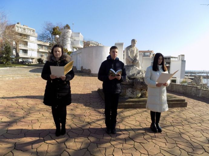 Паметно слово, по текст на литератора Мариана Маринова, произнесоха Стефания Кусева и Виктория Димова от литературен клуб „Звъниче“ и Валери Петров от 7.клас на СУ „Иван Вазов“ гр. Поморие.