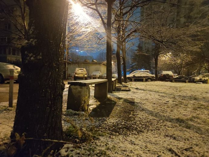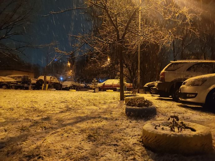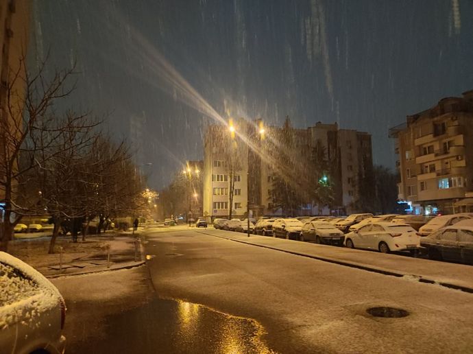 Тази вечер градът побеля късно през нощта - около 2 часа и валежът не спря за 10 минути, а продължава и към този момент.