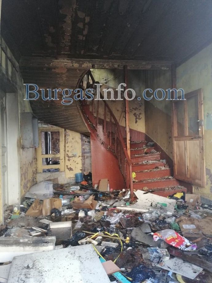 Припомняме, че пожарът пламна само няколко часа, след като от Областна администрация Бургас обявиха, че се предприемат действия, за да се намери държавна институция, предприятие или друга държавна организация, на която да бъде тя предоставена безвъзмездно в управление. Желанието на областния управител е имотът да остане държавна собственост. Сградата е в лошо техническо състояние и се нуждае от спешен ремонт.