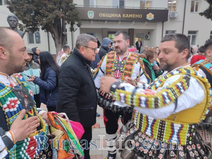 Ритуалът е един от най-чаканите от местните хора. Кукерите от Камено са известни със зрелищните си игри и впечатляващи костюми в цялата страна. Обичаят днес се организира както винаги от Сдружение „Каменовски традиции”. Сред хората беше и кметът на Камено Жельо Вардунски, който поздрави участниците.![]()