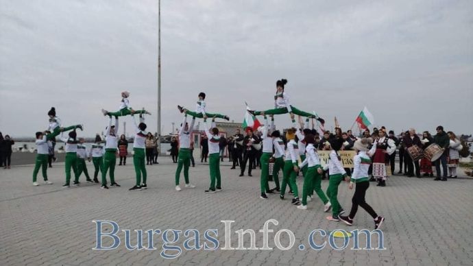 Трицветна вълна заля Морска гара Бургас днес по случай националния празник 3 март. Оттам десетки автомобили с развети знамена тръгнаха за поредна година в Българовско шествие. Колоната премина през централните улици на Бургас и се отправи към град Българово.