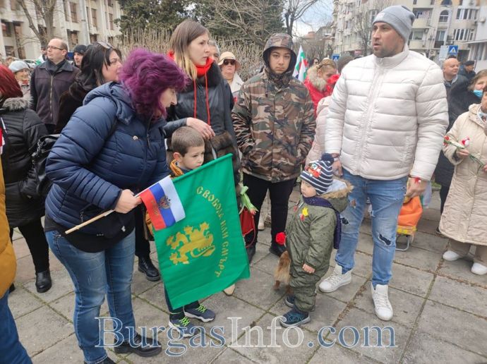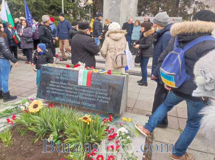 Грозна сцена стъписа присъстващите на церемонията по отдаване на почит към загиналите за Освобождението на България, която се състоя пред Руския паметник в Бургас. Преди пристигането на официалните лица две жени влязоха в директен сблъсък. Едната държеше българско и руско знаме, а другата украинско. В момента, в който част от хората започнаха да се снимат пред паметника, жената с украинското знаме излезе в челните редици. Стигна се до остри реплики между нея и другата бургазлийка, която водеше и дете. Сблсъкът между двете стана повод детето да се разплаче, а хората наоколо да реагират възмутено. След това жената с уркаинското знаме беше наблюдавана от полицията, за да не се стигне до ново нарушаване на обществения ред.