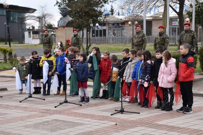 Г-жа Даскалова, учител по български език и литература в Основно училище „Христо Ботев“ – Поморие произнесе празнично слово, с което припомни събитията, довели до подписването на Санстефанския мирен договор – документът, който дава началото на Третата българска държава след близо пет века османско владичество. С рецитал в церемонията взеха участие учениците от ОУ „Христо Ботев“.