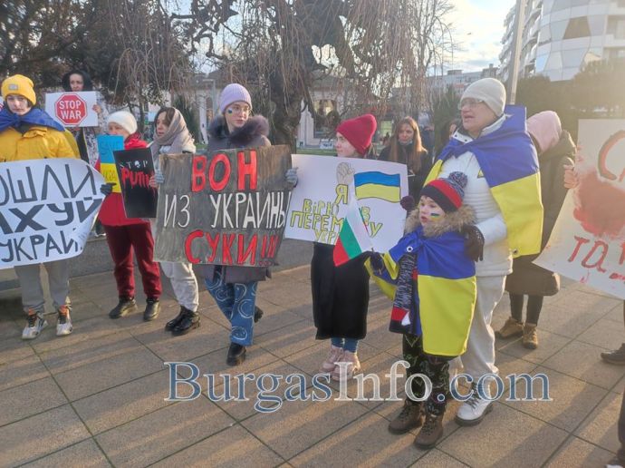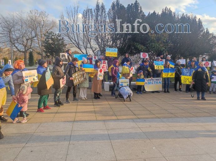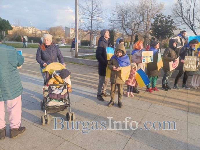 „Нашият протест вече не е само срещу войната, а срещу геноцида над нашия народ. Спасете ни, спасете тези животи, които все още могат да бъдат спасени”. Това заявиха участници в поредната демонстрация, организирана на площад „Тройката” в центъра на Бургас днес. Сред присъстващите бяха цели семейства, включително и майки с малки деца.