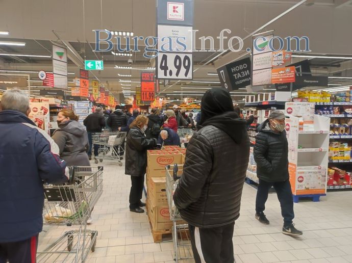 Огромни опашки се извиха още в ранни зори пред „Кауфланд” в Бургас, заради промоцията на олио с цена 2,99 лв.