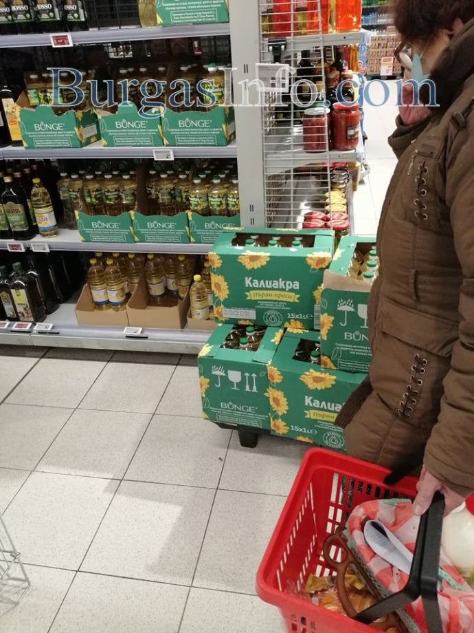 Проверка на БургасИНФО в хипермаркети в Бургас показа, че в почивния ден могат да бъдат открити промоции на олио на цени малко над 4 лв. Регалите обаче са пълни часове след започването им, а в количките на пазаруващите не се забелязват стекове. Все пак една от големите вериги е сложила ограничение в броя на бутилките – до 10 на клиент. Пенсионерите оглеждат и някои посягат, но рядко за повече от 1 бутилка. В други магазини пък и без промоция има цени от около 4 лв., като зависи от марката.