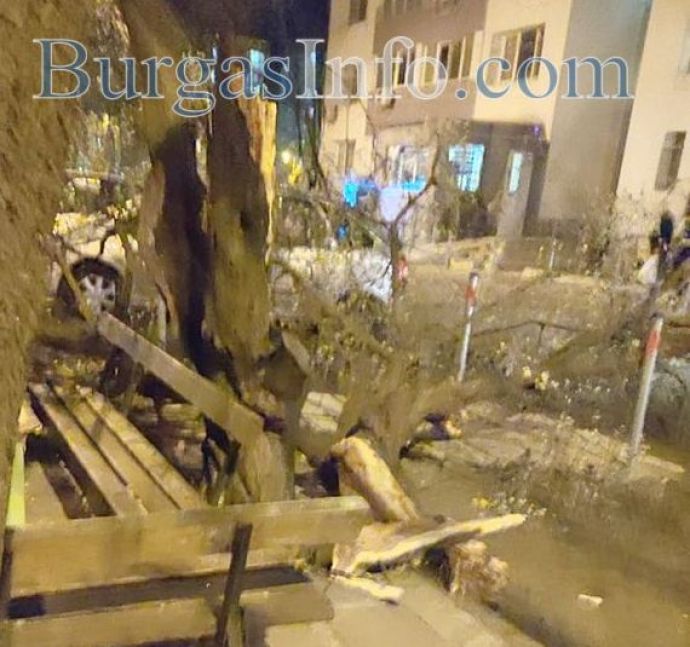 Дърво пък се отцепи и падна пред блок 53, също в ж.к. "Славейков".То се намира точно върху пейките, където хората от района често сядат, сред тях и много възрастни хора. Няма пострадали, дървото е паднало снощи. Днес дървото, което е слива, е отсечено, а срутилата се част е отстранена.