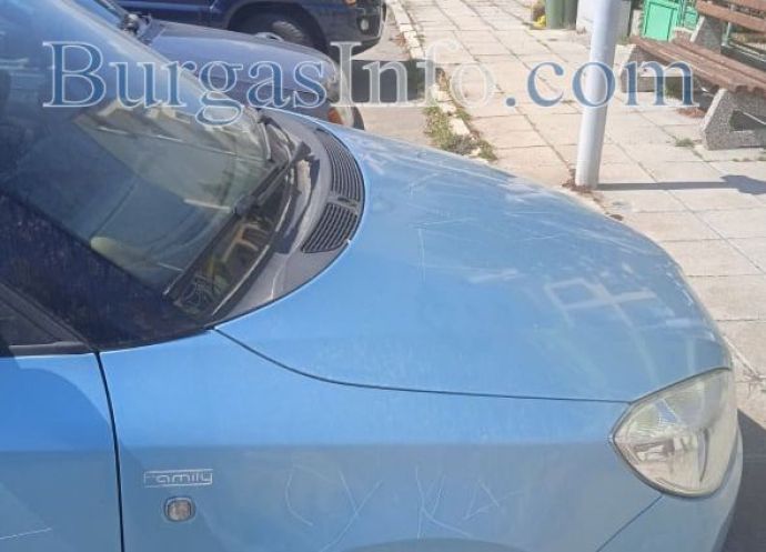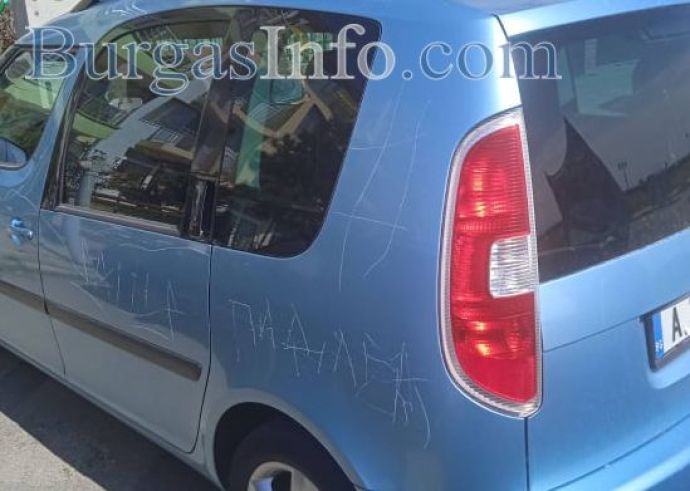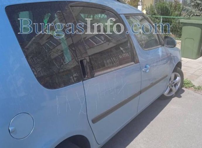 Възрастна жена с имот в Поморие се върна в морския град и откри синята „Шкода“, която шофира, надрана с нелицеприятни надписи. Те са по вратите, по предния капак, издълбани или с пирон или с ключ. От неясните и криви букви трудно се различава какво послание е искал да остави авторът, но се подразбира, че той е антируски настроен, тъй като се разчита името на руския президент. Надписът се вижда, че е на руски език. Колата е била паркирана край крайбрежния булевард.