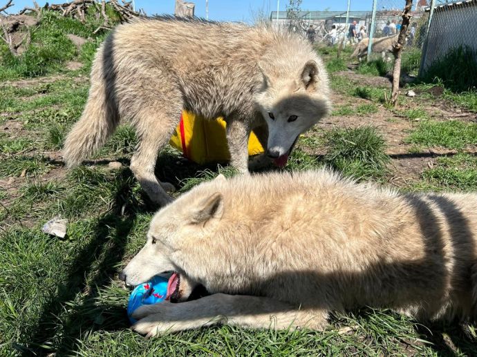 Навръх Великден рожден ден празнуваха две близначки от Зоопарк Бургас. Това са Аманда и Марая. Красавиците са полярни вълчици и днес цялото внимание на посетители и персонал бе за тях. А в големите подаръчни кутии ги очакваха вкусни изненади.