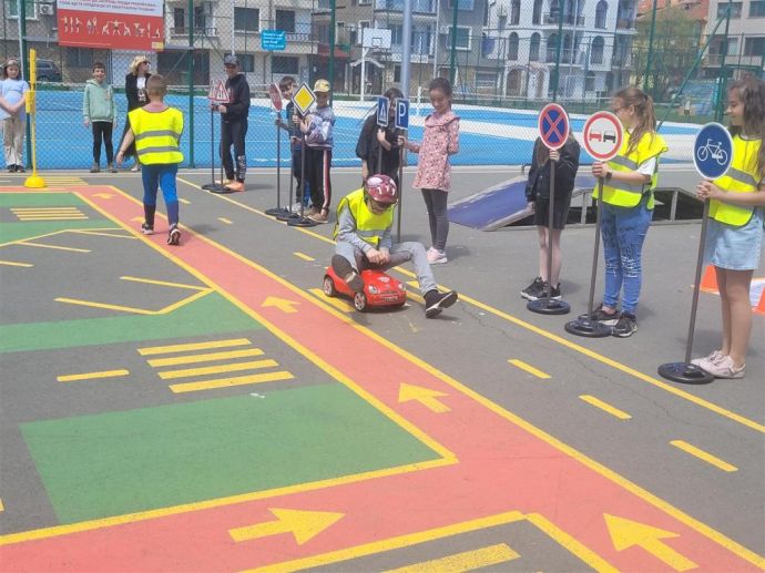 Осигуряването на съвременна образователна среда е сред основните цели, към които се стреми екипът на СУ „Иван Вазов“ – Поморие. Като неделима част от цялостното образование на децата се разглежда и обучението по Безопасност на движението по пътищата (БДП). Освен възпитаването на транспортна култура в часа на класния ръководител, успешна стъпка в тази насока е и новооткритата специална площадка в двора на училището.