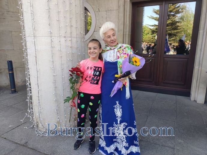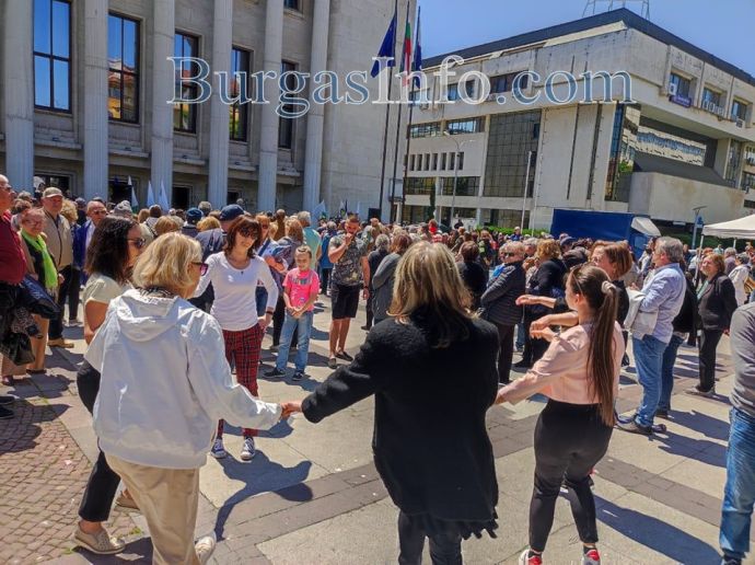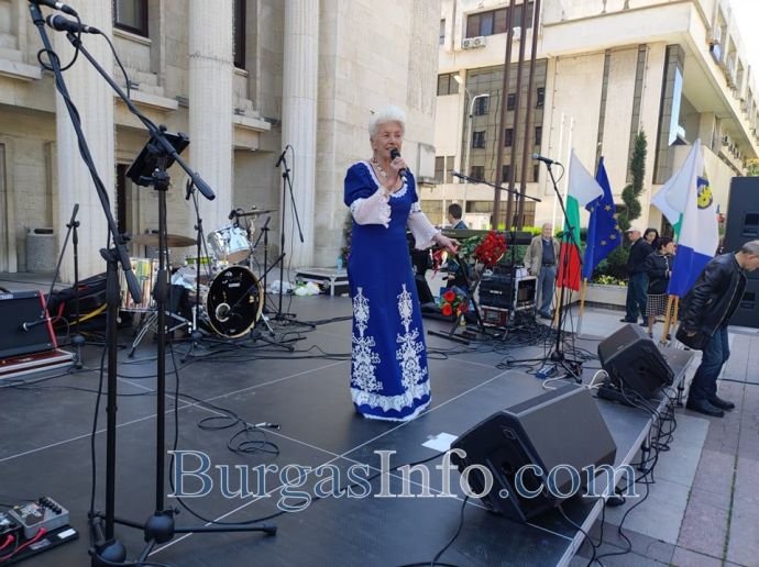 „Много съм щастлива, че днес съм тук сред вас”, каза Янка Рупкина на сцената пред сградата на Община Бургас. Присъстващите бургазлии и гости на града извиха импровизирано хоро.