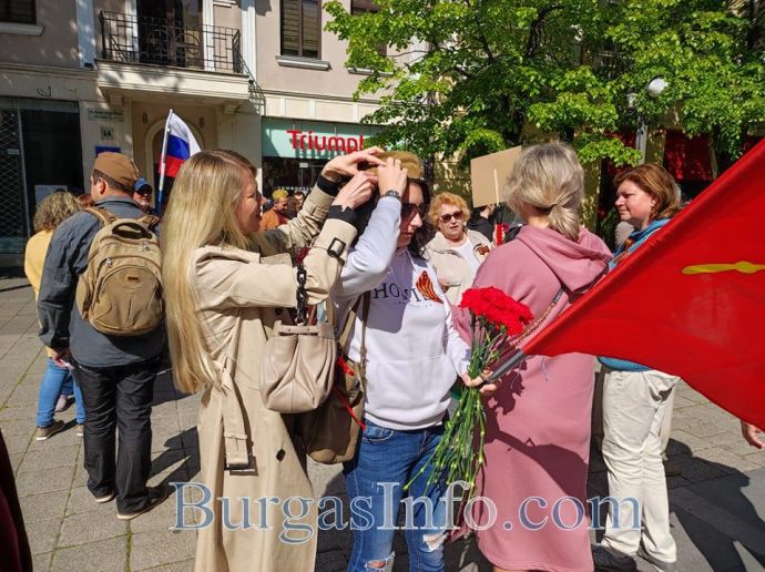 Бургас в момента е един от градовете, в който много украинци намериха свое убежище. Днес те обаче няма да участват със свои мероприятия в отбелязването на Деня на Европа, именно, за да не се получава напрежение между привържениците на двете групи. На украинците им беше издадено разрешение вчера да проведат свое мероприятие, така че да не се застъпват събитията. Крайната точка на шествието на бесмъртния полк в момента е Паметникът на Съветската армия, където участниците ще положат венци и цветя. Към този момент тяхната демонстрация протича без инциденти.