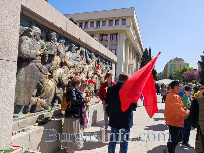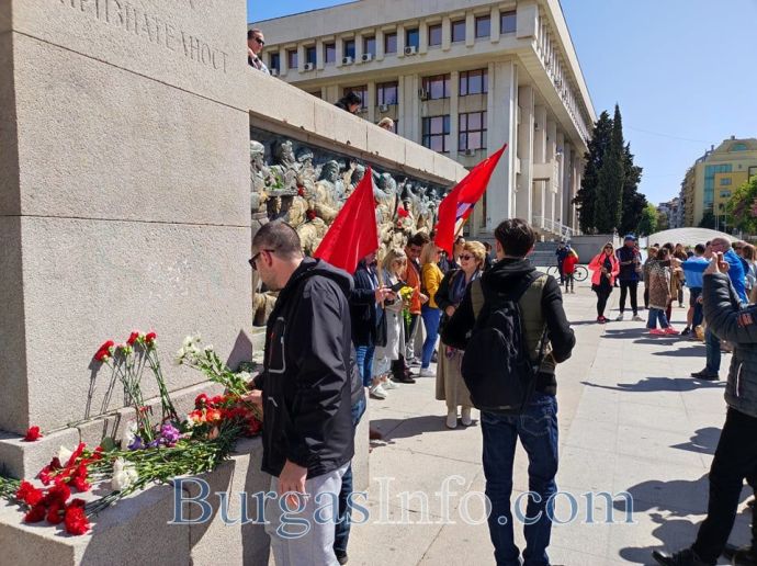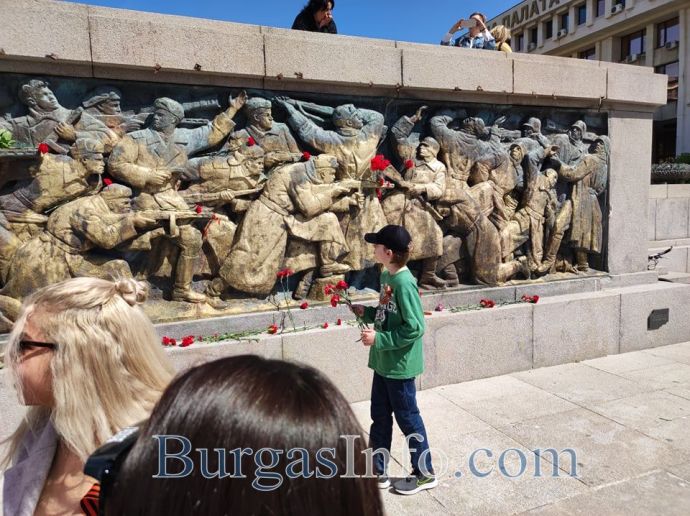 Шествието на Безсмъртния полк стигна до паметника на Съветската армия, известен в Бургас като Альоша. Днес той е засипан с венци и червни карамфили в чест на Деня на победата. Над 150 души се събраха пред монумента, за да отдадат почит на загиналите във Втората световна война.