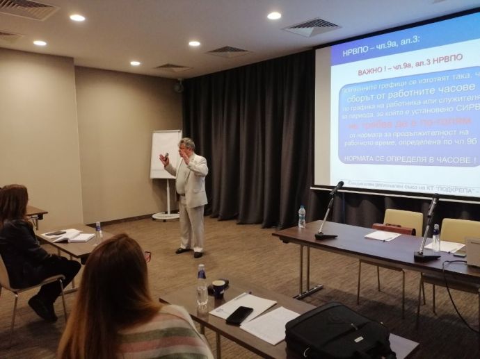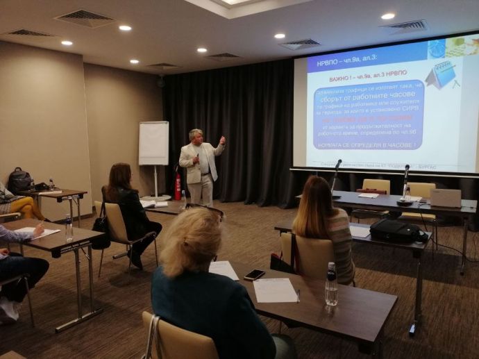 Лектор на семинара бе юристът от Варна Мирослав Димитров, който е специалист по трудово право с голям опит.