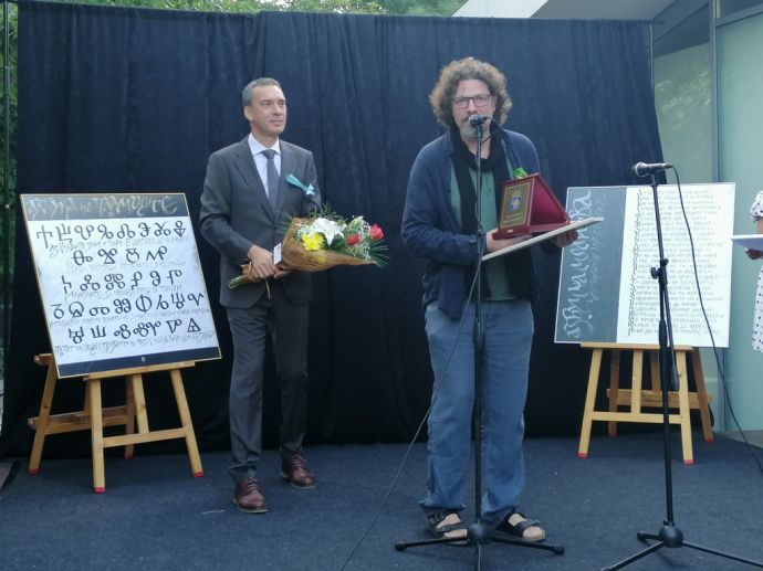 За принос в развитието на плакатния жанр и ярко присэствие в културния живот на града