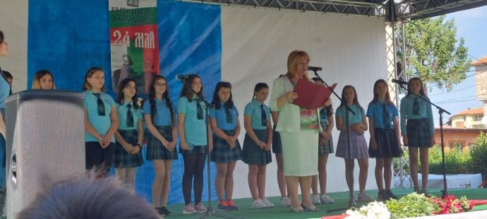 Петя Казакова – директор на СУ „Иван Вазов“ – гр. Поморие също изнесе прекрасно слово: Днес е празникът, чиито смисъл, послание и богатство не се побират в един ден на годината. Днес е денят на всички духовни люде, които изповядват идеята, че храмът на любомъдрието не се гради с камък, а с дух, вяра, ревност, ум, постоянство и оптимизъм!