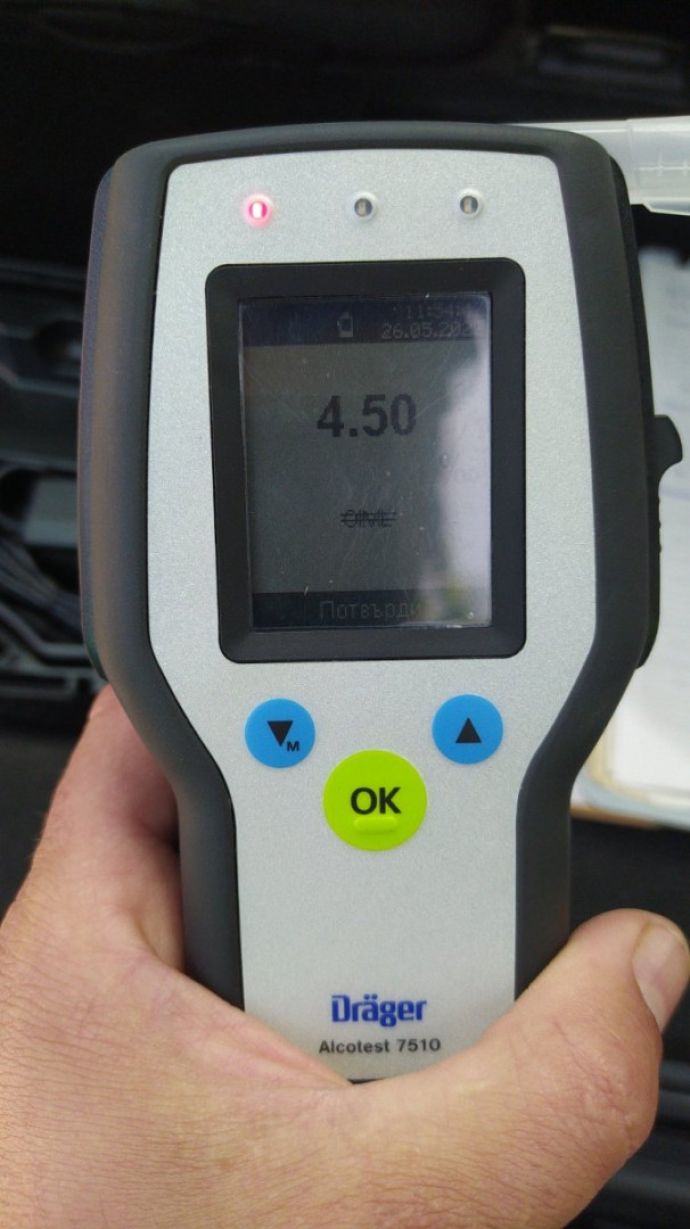 Служители от Районно управление Приморско спрели за проверка лек автомобил марка "Рено Меган Сценик", със софийска регистрация, управляван от 36-годишен софиянец. Това е станало на 26 май около 11.45 часа на ул. "Трети март" в Приморско с посока на движение към ул."Сиренa". Униформените установили, че същият шофира след употреба на алкохол с концентрация - 4.50 промила. Водачът е тестван и за наличие на наркотични упойващи вещества - дрегерът отчел положителна проба за употреба на канабис.