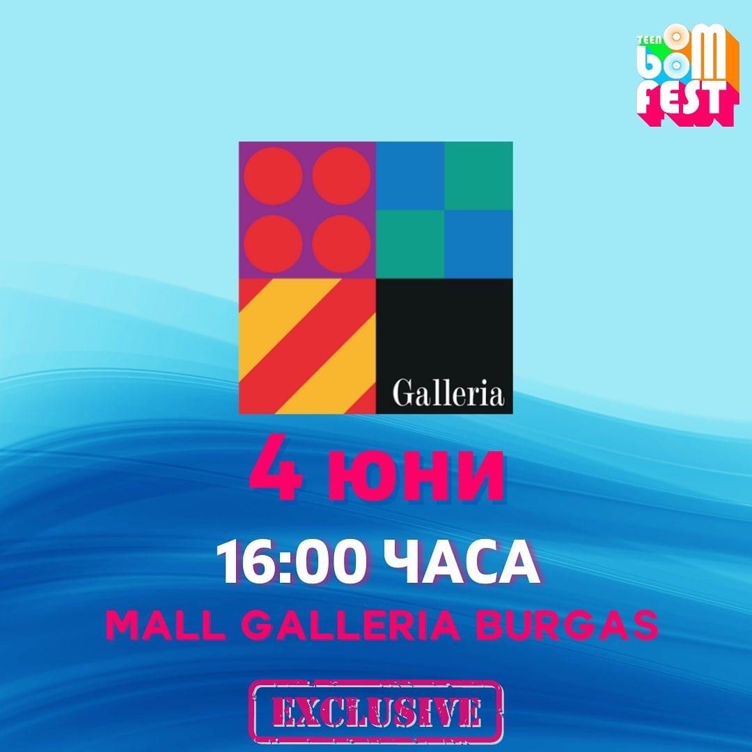 EVA от „Ергенът”, Торино и Пашата, Кибритя и още куп онлайн звезди идват в Бургас за TEEN BOOM GALLERIA BURGAS на 4 юни. Проявата ще отбележи 10 -тата годишнина на най-успешния търговски център в града.