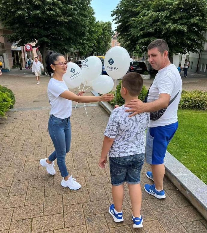 Усмихнатите служители на „ЛИНА” предизвикаха много радостни емоции и в градовете: Варна, Стара Загора и Сливен, където зарадваха много момченце и момиченца с балони.![]()