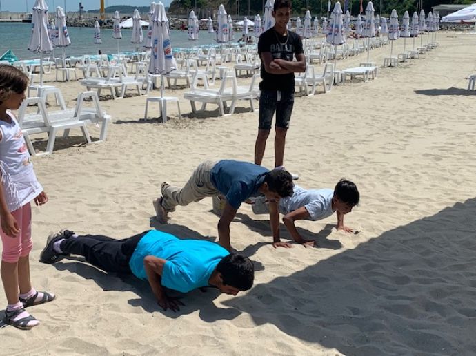 Емоционални и заредени с много напрежение спортни двубои – по канадска борба, най-голям брой лицеви опори и тилни легове се проведоха днес между възпитаниците на Центъра за работа с деца от улицата – Община Бургас, които гостуваха в първите юнски дни на концесионера на плаж „Крайморие” Николай Димитров и на управителя на бар „Маями” – Мая Пепелянкова.