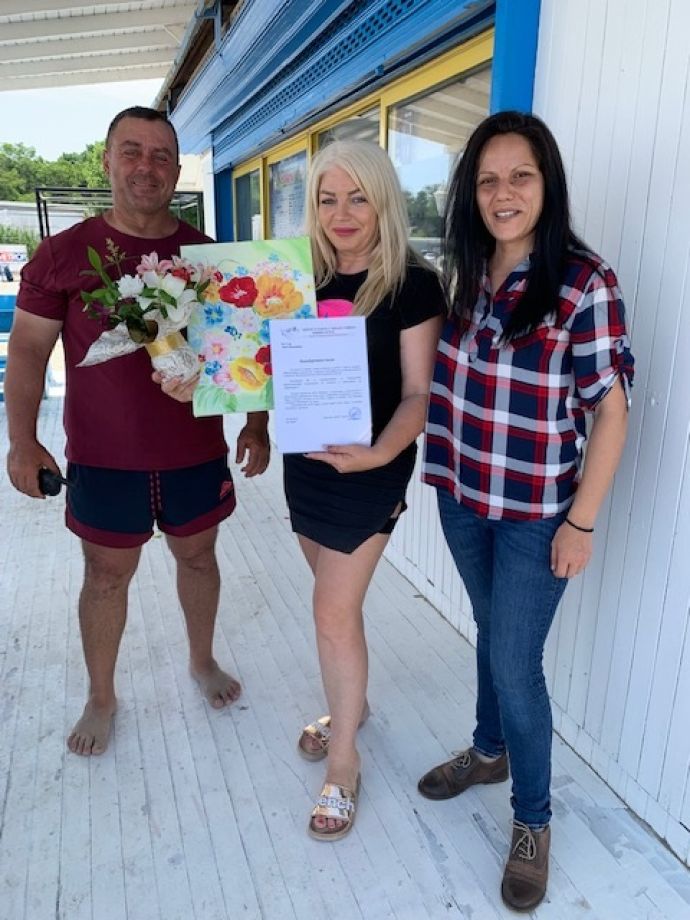 Поводът за визитата на малчуганите бе отбелязване Денят на детето 1-ви юни, като традицията и през тази година бе спазена – летния сезон да се открие на бургаския плаж „Крайморие”. Децата на възраст от 9 до 17 години, от кварталите „Победа” и „Горно Езерово”, бяха посрещнати изключително топло от Мая Пепелянкова и Николай Димитров, които в знак на благодарност за гостоприемството получиха от Управителя на Центъра – Яна Вачкова благодарствен адрес, цветя и прекрасна картина, изработена от талантливите потребители на социалната услуга.