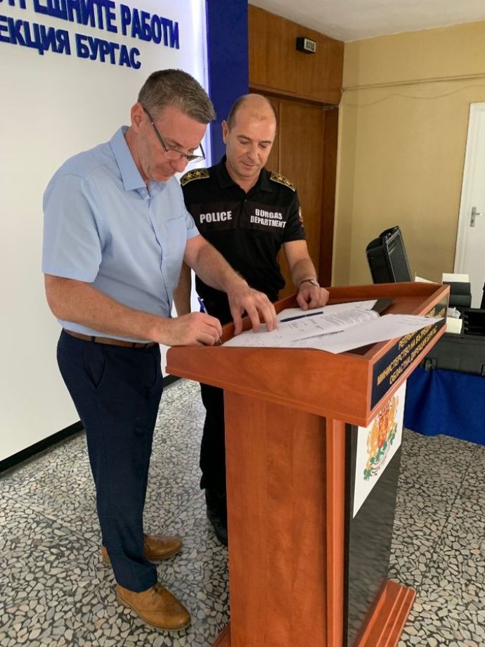 Мартин Шайърс – международния офицер за връзка на Националната агенция подписа с Директора на ОДМВР – Бургас старши комисар Калоян Калоянов договор за направеното дарение, като подчерта, че идеята за дрона е възникнала преди около две години. В резултат на множество разговори и отличните партньорски контакти между двете институции идеята е финализирана и дронът ще бъде повече от полезен в пряката полицейска работа по ограничаване на различни по вид криминални деяния. Според Шайърс „дронът изглежда забавен, но той ще е и много полезен, тъй като голям процент от разследванията ще бъдат улеснени от всевиждащото му око”.