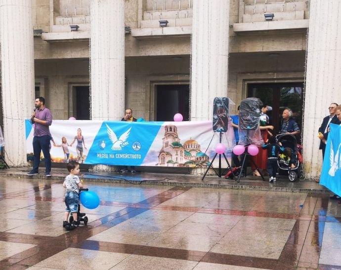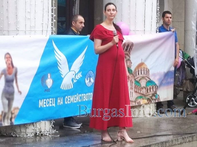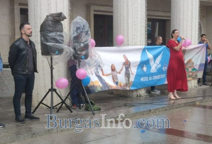 Семейства с деца излязоха на площад Атанас Сиреков в центъра на Бургас, за да защитят традиционните ценности. Те поставиха началото на Месец на традиционното семейство. Демонстрацията им започна с националния химн в изпълнение на Божена Александрова, която в момента е бременна с петото си дете. "Тук сме да защитим семейството, което според нас се състои от татко, майк, деца, както и от баба и от дядо", казаха организаторите.