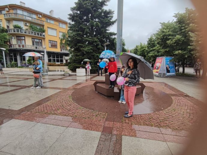 Проливен дъжд осуети мероприятието, като в момента се наложи участниците да потърсят подслон в околните сгради.![]()