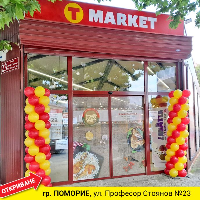 T MARKET отвори свой нов обект в Поморие във вторник, като в този ден магазин на веригата беше открит и в Котел. С тях общият брой на магазините стават 103, обхващащи 57 малки и големи градове в цялата страна.