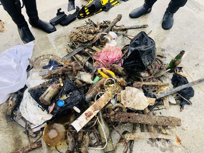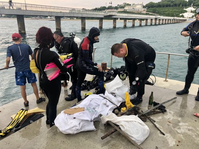 Водолазите успяха да извадят на повърхността много железни предмети, пластмасови и стъклени бутилки. Дамска чанта и чадър също се оказаха сред отпадъците на морското дъно.