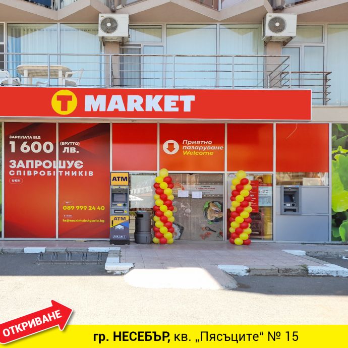 Т MARKET отвори врати в Слънчев бряг, като така обектите на хранителната верига вече са 105 и покриват 58 гpaда в цялата страна.