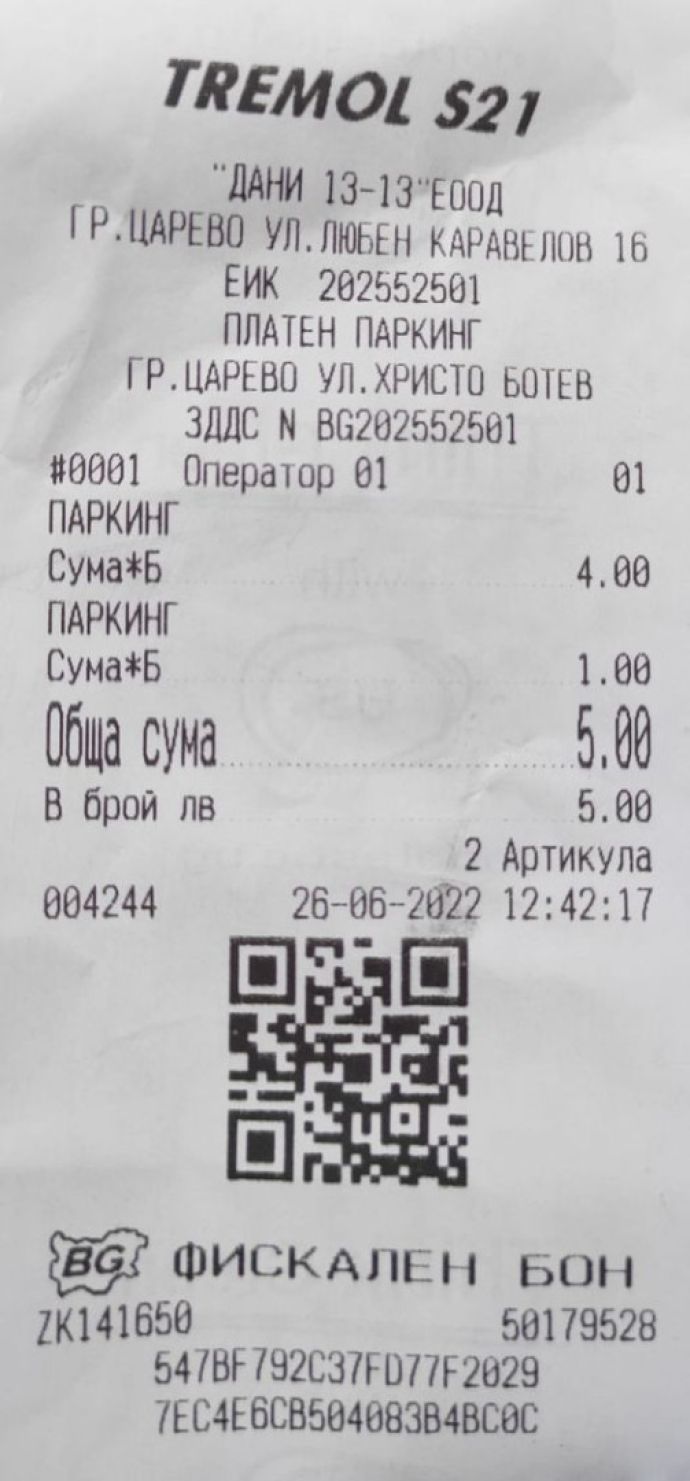 „Уважаеми приятели от гр.Царево. Ако до днес, дори без причина съм посещавал прекрасното ви градче, то днес ми дадохте категорична причина дълго време да избягвам града ви ! Разбирам , че паркирането е сериозен проблем навсякъде, но 4 (четири) лева на час за паркиране на улицата (дори боя не си бяхте направили труда да купите) никъде до сега не бях плащал !!! Пожелавам ви успешен сезон и знаейки , че почти нищо от тези пари няма да влезнат в общинската каса, още веднъж да пожелая на печелившите честито!“.