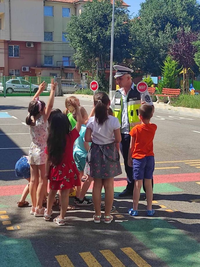 Близо 80 малчугани от детска градина „Теменуга“ в Ахелой се включиха в полицейското превантивно мероприятие, свързано с традиционната акция „Ваканция! Да пазим живота на децата на пътя!“, проведено от инспектора по пътен контрол към Районно управление – Поморие - Георги Димитров и инспектора от Детска педагогическа стая в крайморското управление - Анелия Гочева. Под формата на игри и непринуден диалог с подрастващите бяха проверени получените до момента познания в сферата на пътната безопасност. Разяснено бе как децата да пресичат и се движат безопасно по пътното платно, как да управляват безопасно: велосипеди, ролери, скейтборд и тротинетки. Изрично бе обърнато внимание на облеклото им – дрехите да са светли, а обувките – удобни и безопасни.