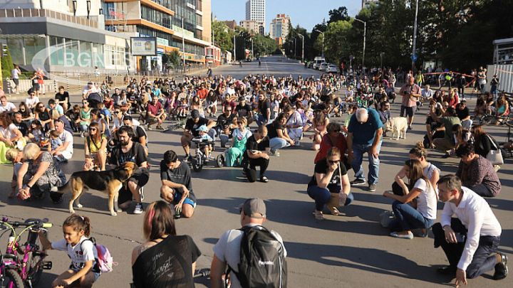 Част от тях положиха цветя в памет на жертвите, а други застанаха на колене, за да почетат жертвите. Движението в района бе блокирано.