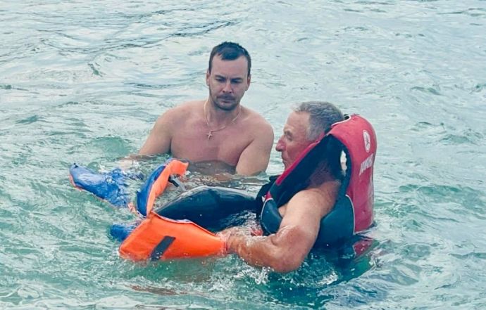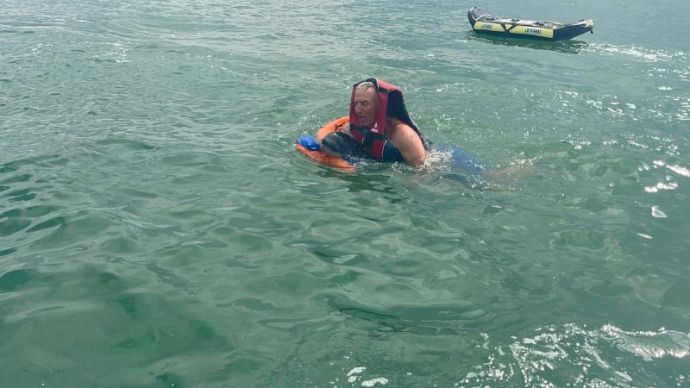 „Беше ни подаден сигнал от служители на РИОСВ, които са били на съседния плаж Форос и поискаха съдействие за делфин, който дълго време е бил в скалите. Сформирах екип – аз, Васил Алексиев, който е старшият ни спасител, както и Валентин Стоянов, който кара джета. Отидохме на място, делфинът беше дезориентиран, при всяко пускане, той се връщаше към брега. Сложихме го в една спасителна жилетка в ръцете на Васко. Около километър навътре го вкарахме и го пуснахме, след като се уверихме, че делфинът вече е в кондиция. Започна да изхвърля вода от клапата над главата, което значи, че той вече е добре, ние се отдалечихме и си тръгнахме.“, разказа Николай Димитров.