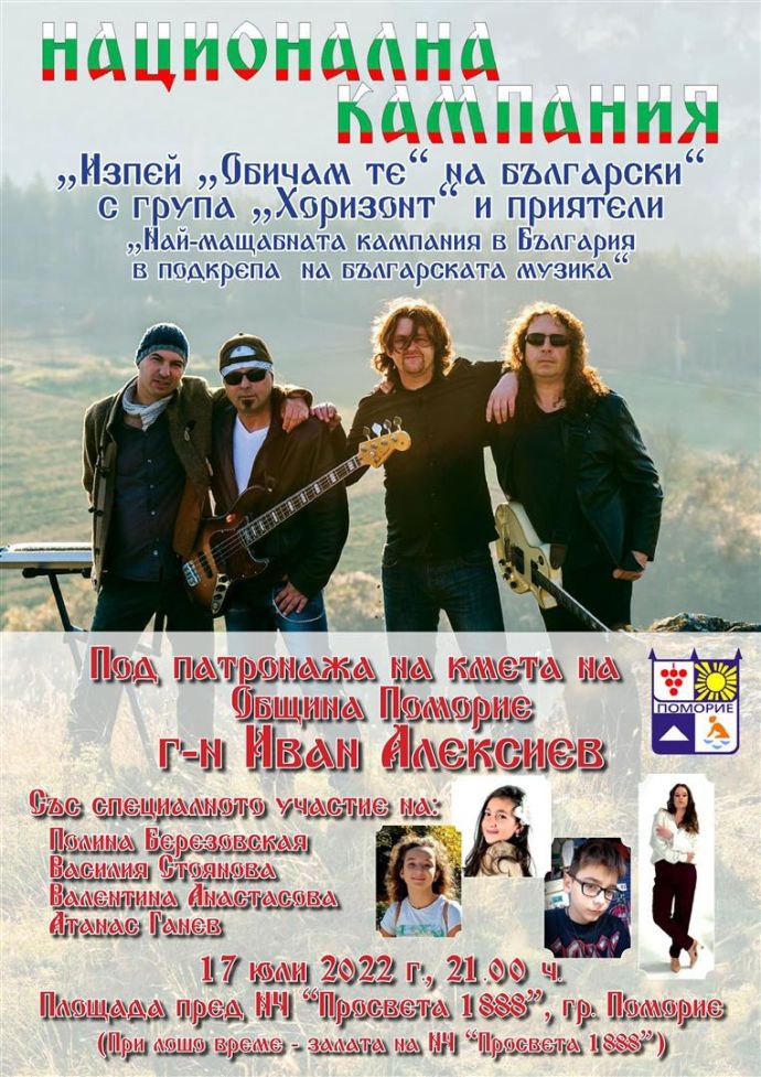 Поморие ще бъде столицата на българския рок на 17.07.2022 г. /неделя/, от 21.00 ч. Момчетата от култовата вече българска рок банда Хоризонт ще забият на живо на площада в центъра на града едни от най-обичаните български рок хитове на всички времена, както и емблематични свои парчета!