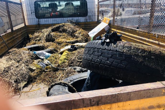 Извадени бяха гуми, арматурни железа и пластмасови отпадъци. Акцията продължи повече от час, а събраните боклуци бяха транспортирани и депонирани.